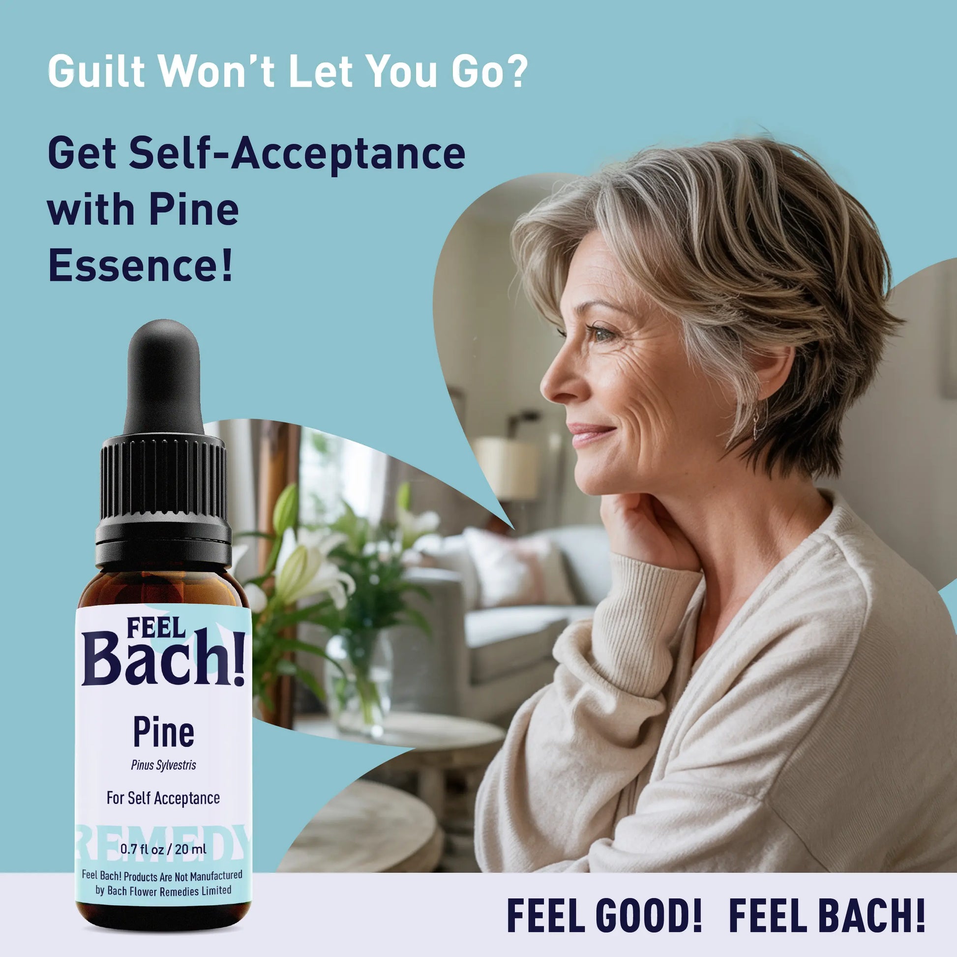 Once treatment with this Feel Bach! Flower Essence has been successful, the Pine person is able to see and accept his own faults and mistakes - and let them go, realizing that mistakes are stepping stones in life.
