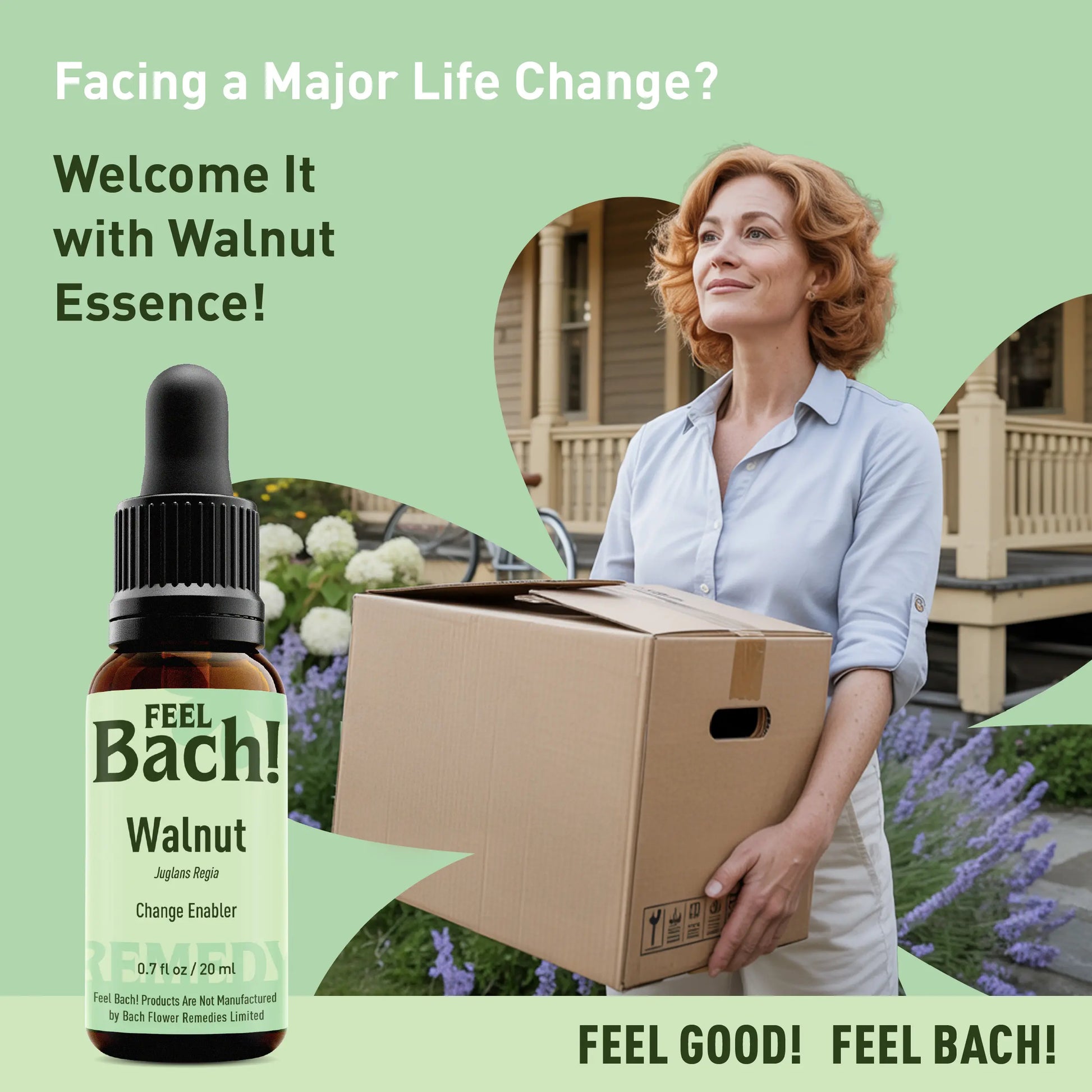 Walnut is the flower essence to use any time a voluntary major life change is in the offing. This may be a change in residence, in occupation, or in companionship. It occurs when moving to a new community or country, upon starting a family, on contemplating divorce, when beginning retirement, and when voluntarily moving from one's home into a retirement home.
