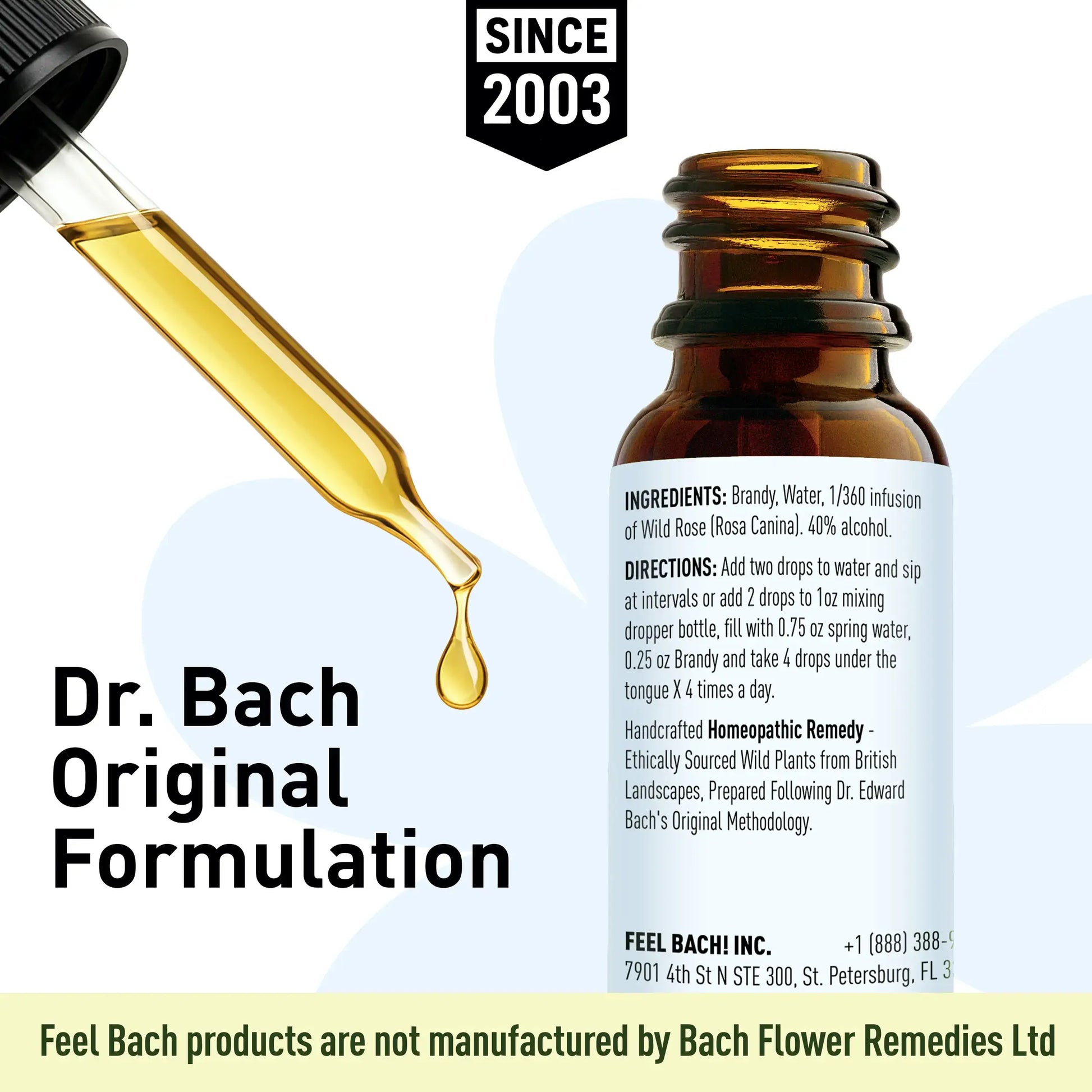 While generally a chronic state of being, the negative Wild Rose state can sometimes occur as a temporary condition. This might occur after a miscarriage, during psychotherapy, or during a phase of intense work on one's personality. During these times, this Feel Bach! Flower Essence will help the person return to their normal states of energy and enthusiasm.