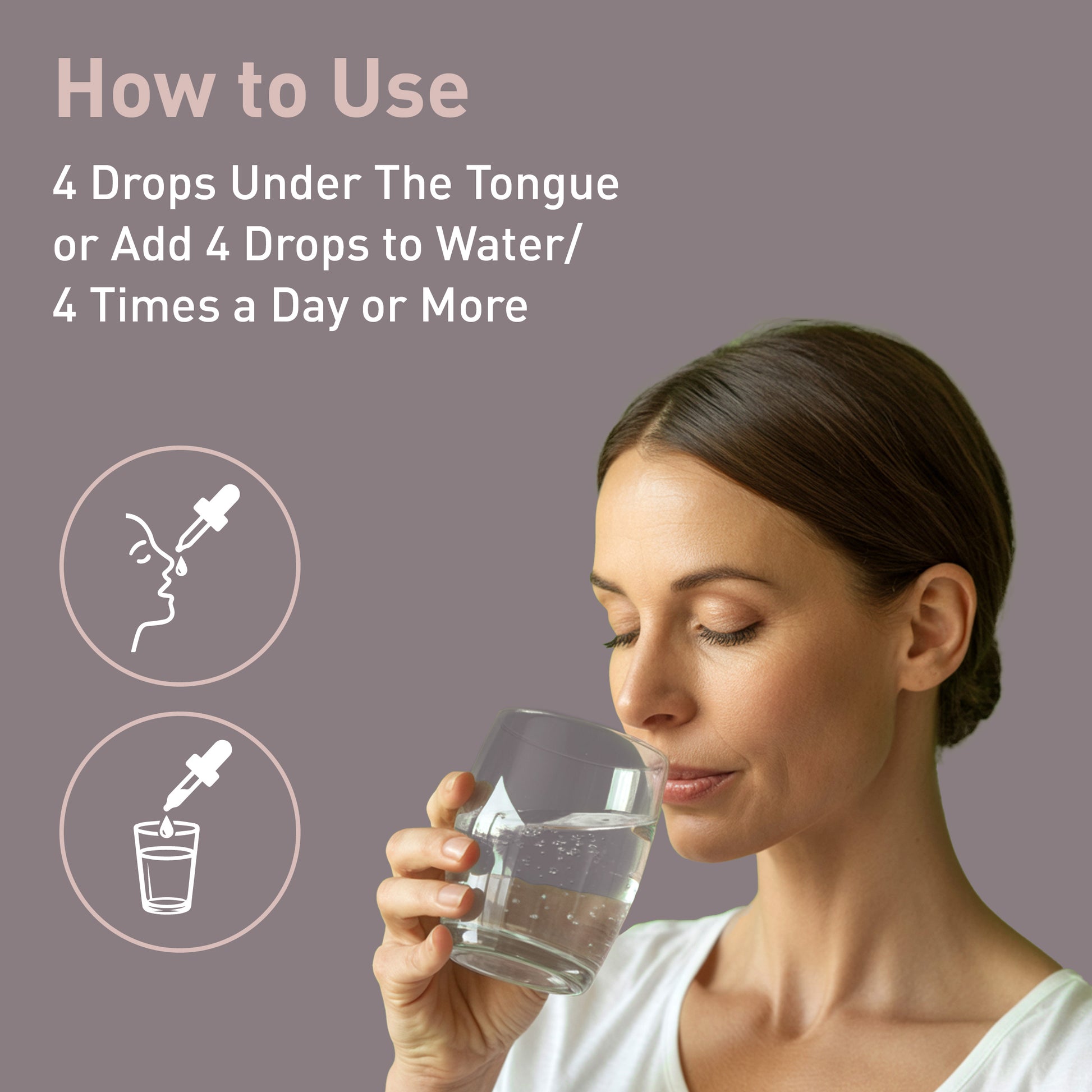 Alternatively, add 4 drops to a glass of water and sip throughout the day.